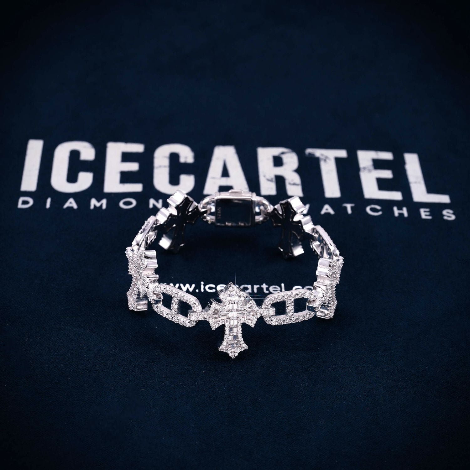 ICECARTEL exclusive 10MM Moissanite Cross Mariner Gucci Link Bracelet is now available, made from 925 sterling silver and PVD plated with a thick layer of 14K Gold.