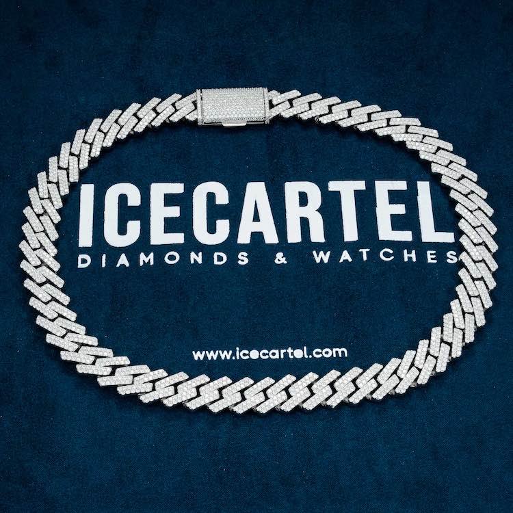 ICECARTEL exclusive 2-Row 15MM Moissanite Cuban Link Chain 14K Gold is now available, made of 925 sterling silver and PVD plated with a thick layer of 14K Gold. This moissanite cuban link chain measures exactly 18 millimeters in diameter, with each link measuring exactly 9 millimeters.