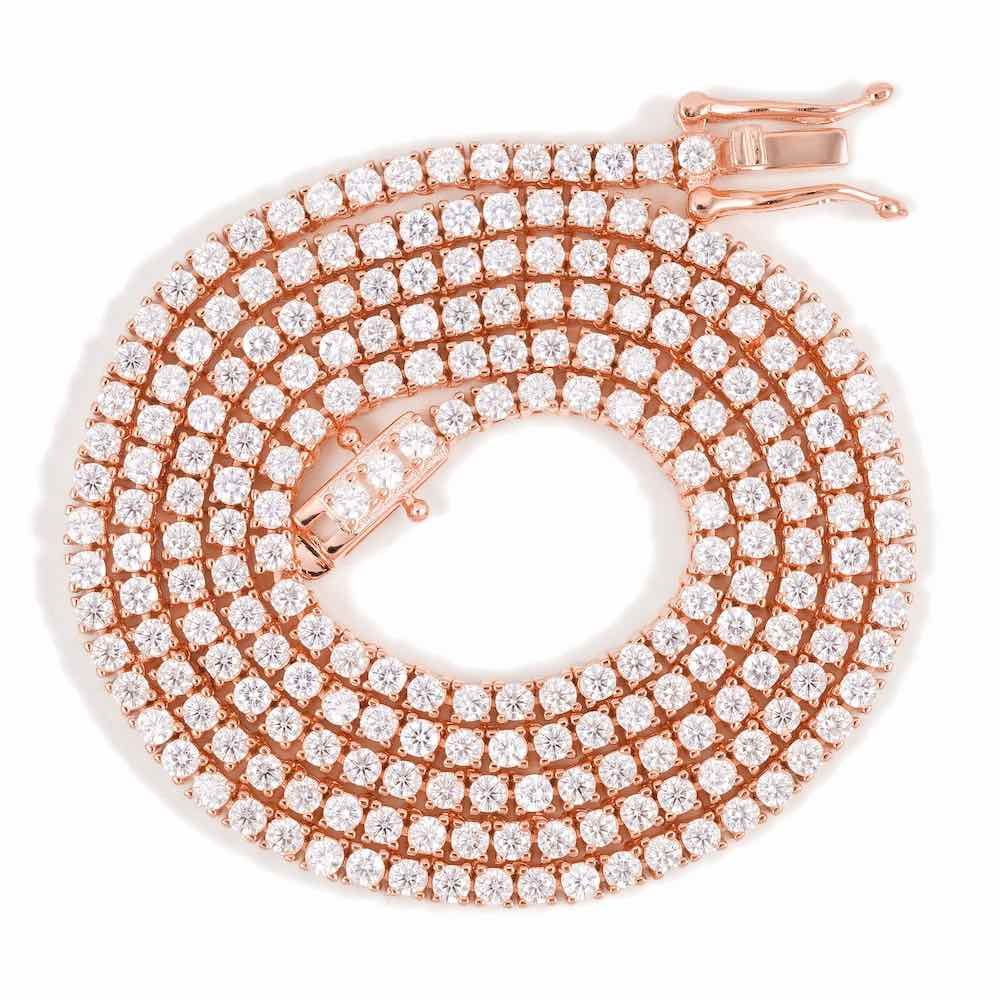 ICECARTEL exclusive 2MM Diamond Tennis Chain is now available, made of 14K Solid Rose Gold and VVS Lab Diamonds. This diamond tennis chain measures exactly 2 millimeters in diameter.