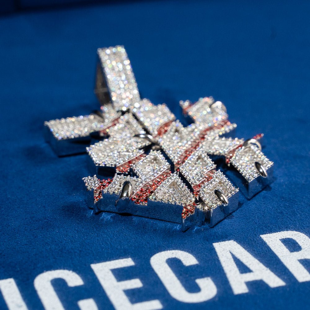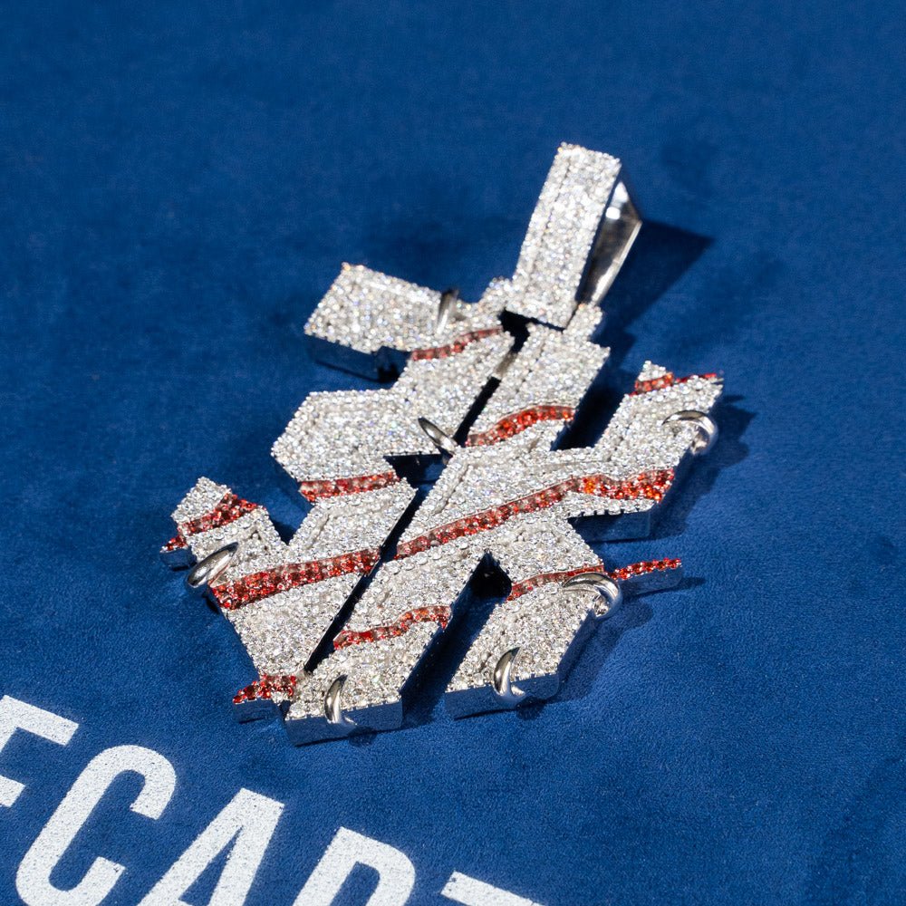 This 2×2″ moissanite custom pendant is iced out with brilliant cut, colorless (D-Color & Red), VVS moissanite flawless diamonds. All of the diamonds on this custom moissanite letter pendant pass the diamond tester.
