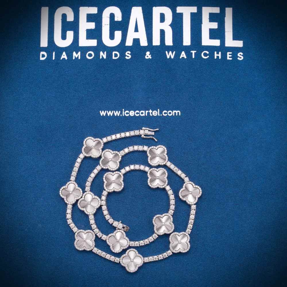 - Package Includes: ICECARTEL Custom Jewelry Box, Official GRA Moissanite Certficate, 3MM Four Leaf Moissanite Clover Tennis Chain 14K Gold