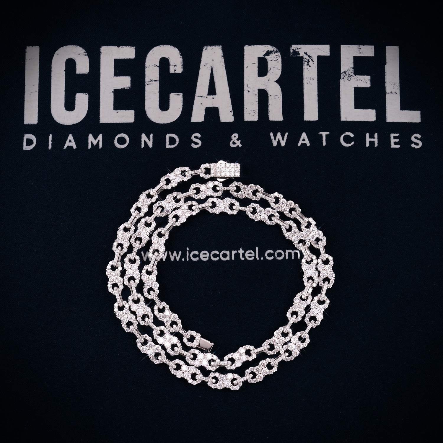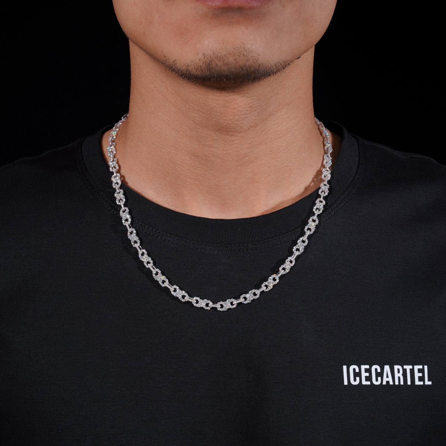 ICECARTEL exclusive 6MM Moissanite Clustered Infinity Link Chain is now available, made of 925 sterling silver and PVD plated with a thick layer of 14K Gold.