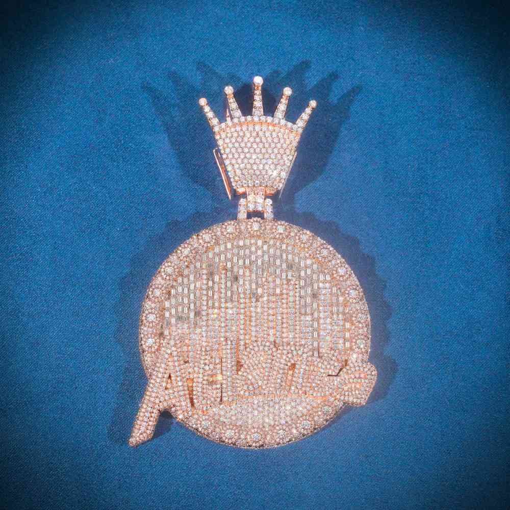 This custom pendant is iced out with VVS moissanite flawless diamonds. All of the diamonds on this custom pendant passes the diamond tester.