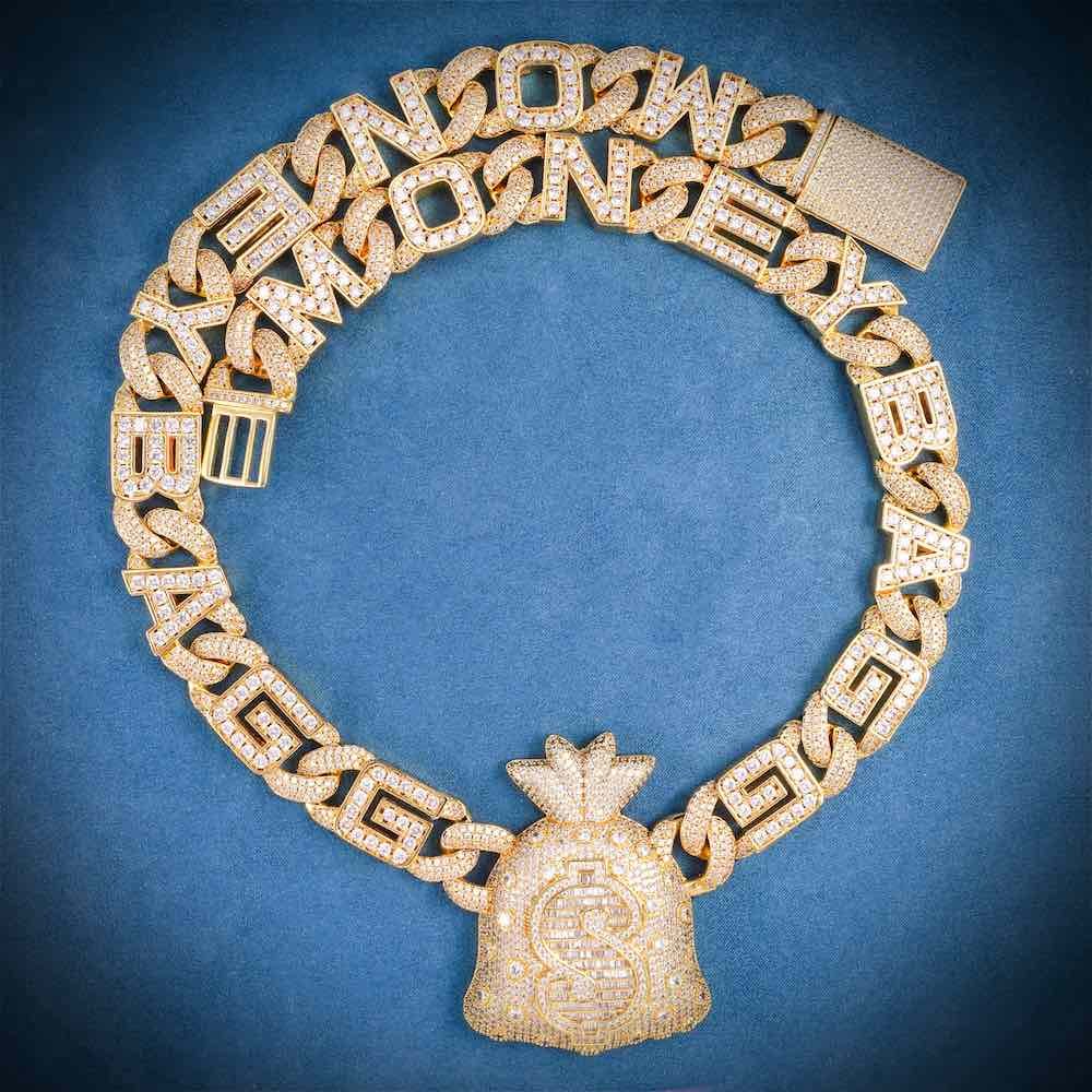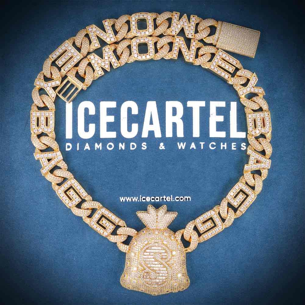 ICECARTEL exclusive 12MM Custom Moneybag Chain Pendant is now available, made of 925 sterling silver and PVD plated with a thick layer of 14K Gold.