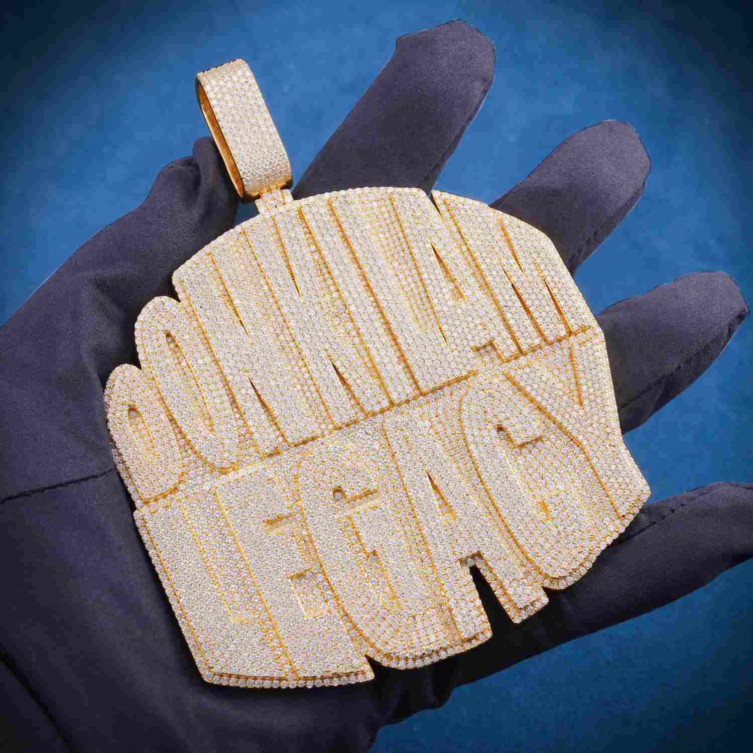 ICECARTEL exclusive “DON KILAM LEGACY” Custom Moissanite Name Pendant 14k Gold is now available, made of 925 sterling silver and PVD plated with a thick layer of 14K Gold.
