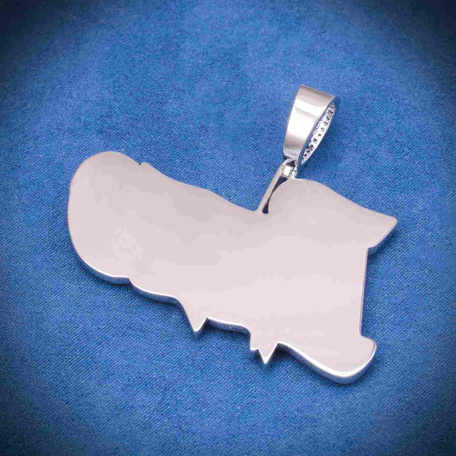 This custom pendant is iced out with VVS moissanite flawless diamonds. All of the diamonds on this custom pendant passes the diamond tester.