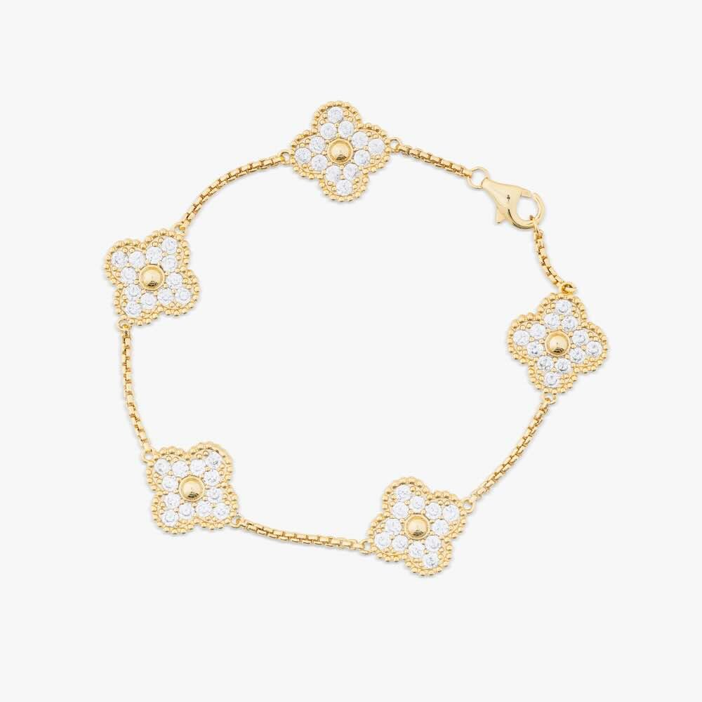 Four Leaf Yellow Gold Moissanite Motif Bracelet
