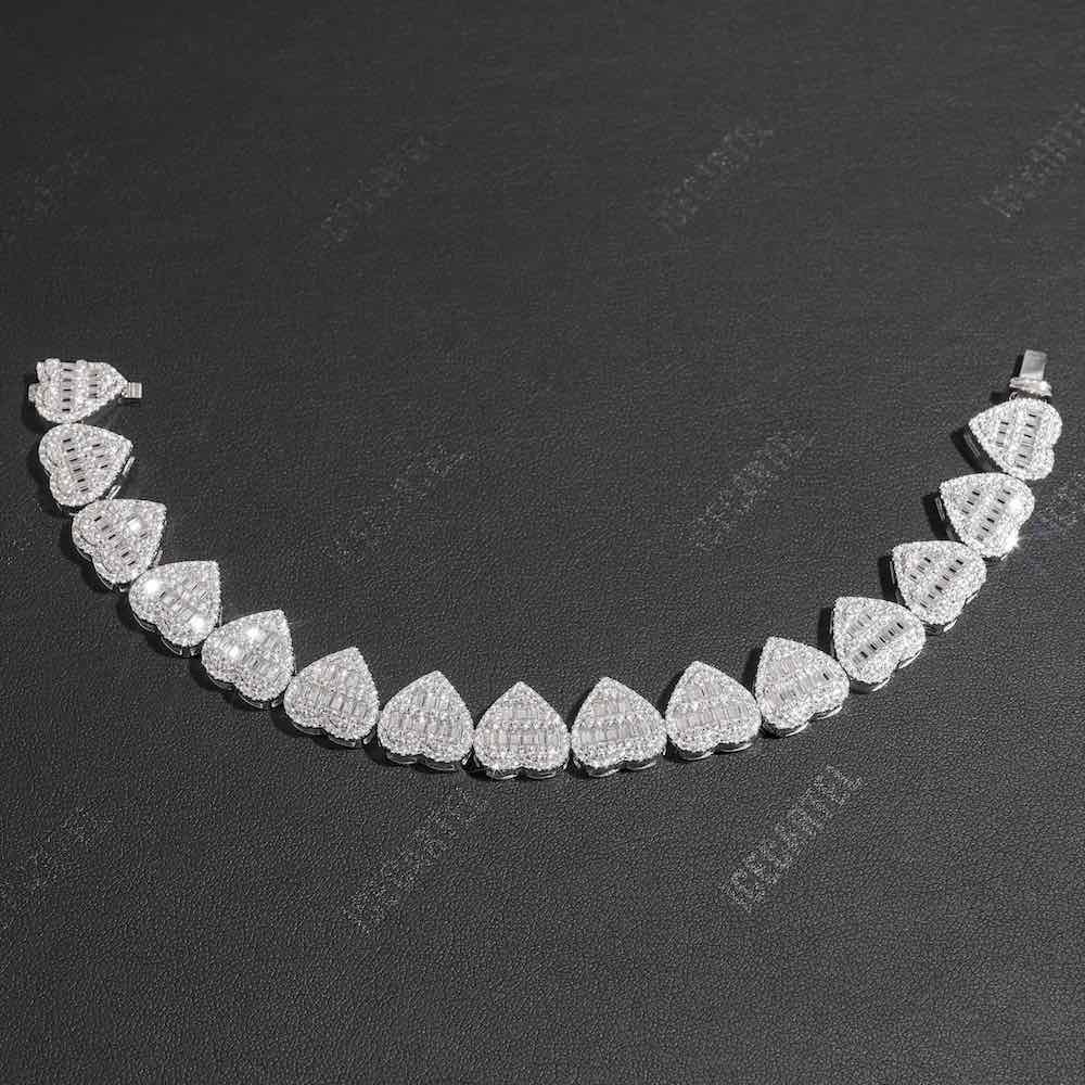 - Package Includes: ICECARTEL Custom Jewelry Box, Official GRA Moissanite Certficate, 13MM Iced Out Baguette Heart Tennis Bracelet 14K Gold