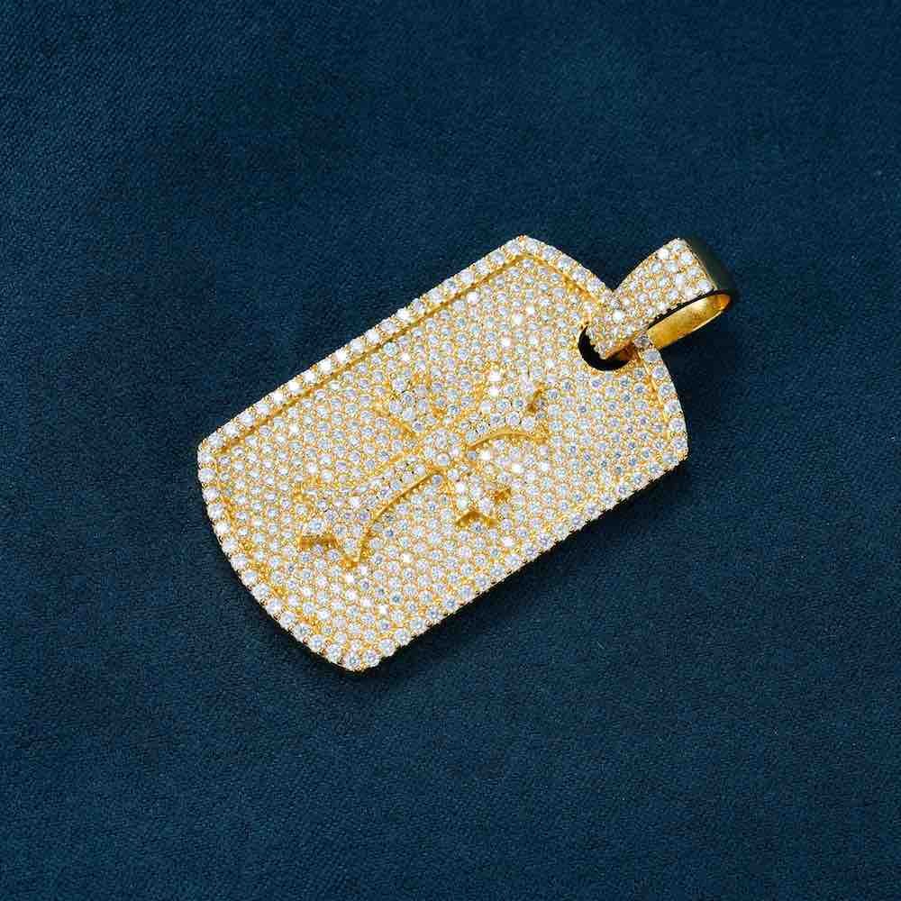 ICECARTEL exclusive Moissanite Dog Tag Cross Pendant 14K is now available, made of 925 sterling silver and PVD plated with a thick layer of 14K Gold .