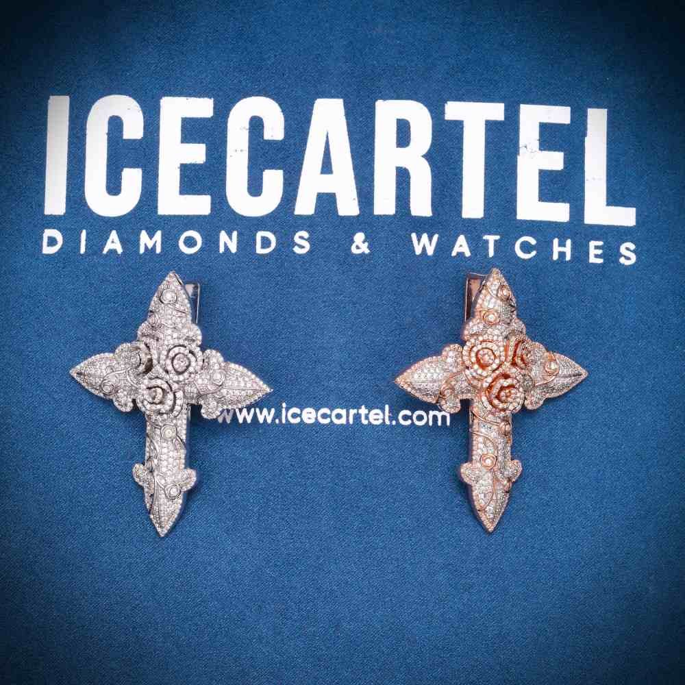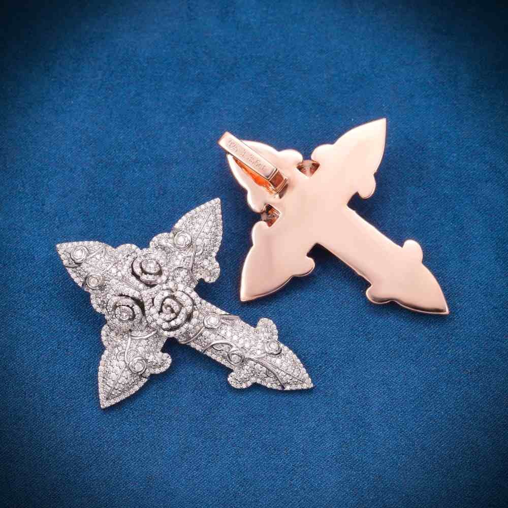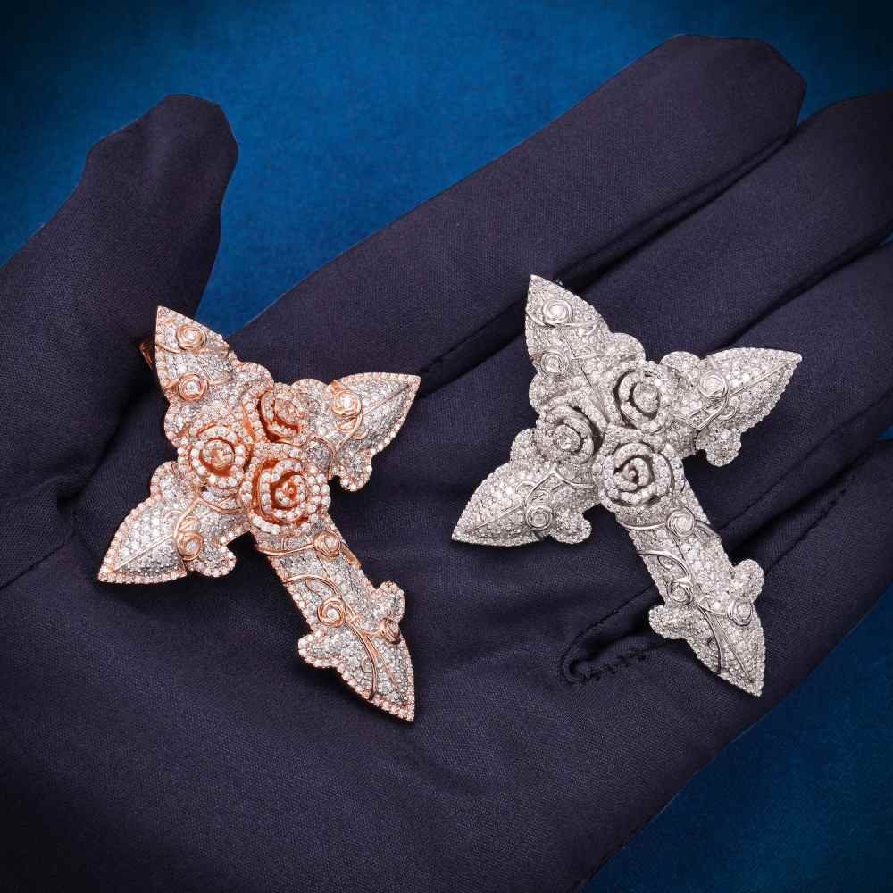 ICECARTEL exclusive Moissanite Flower Cross Pendant 14K Gold is now available, made with a base of 925 sterling silver and PVD plated with a thick layer of 14K White Gold .