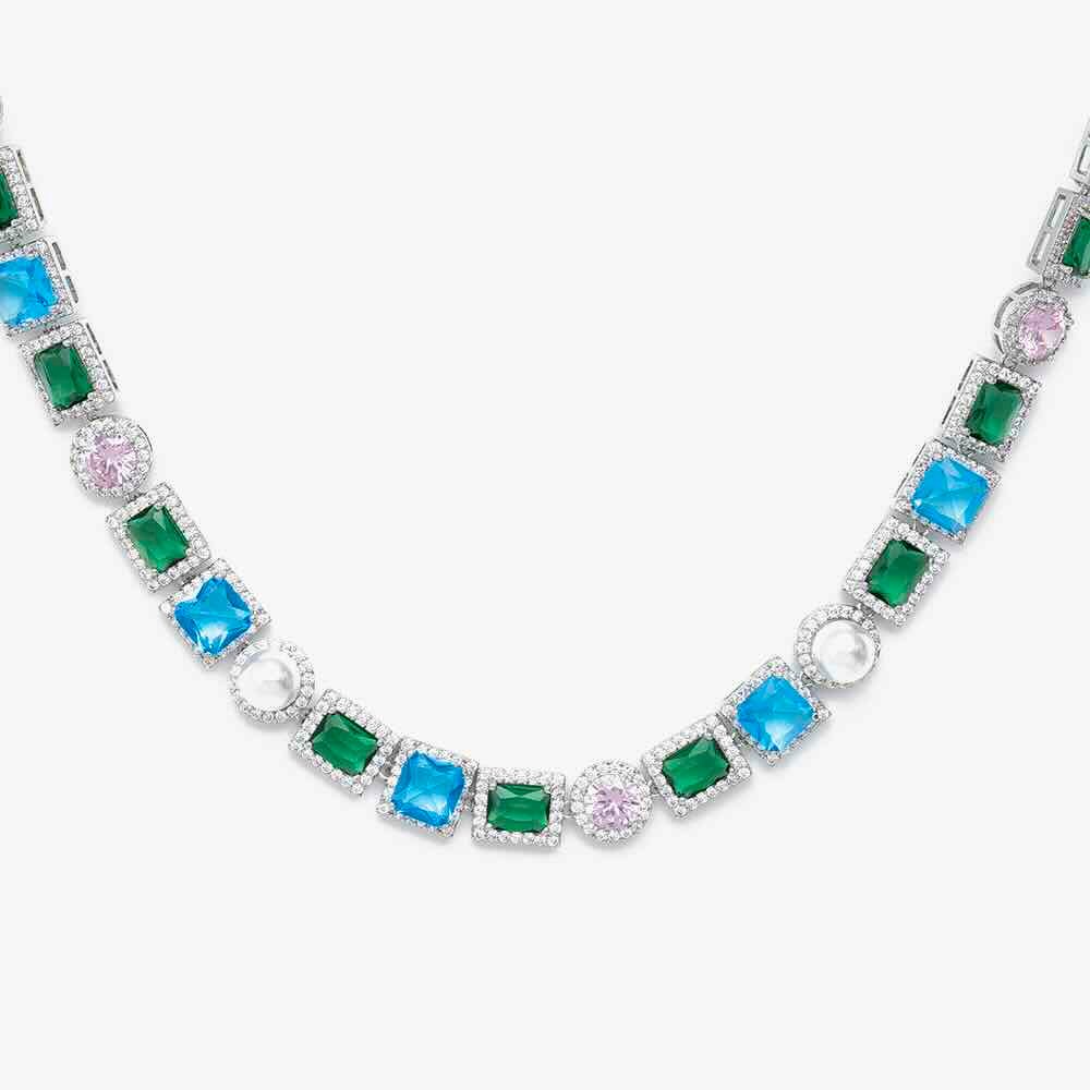 Multi Gemstone Halo Moissanite Chain